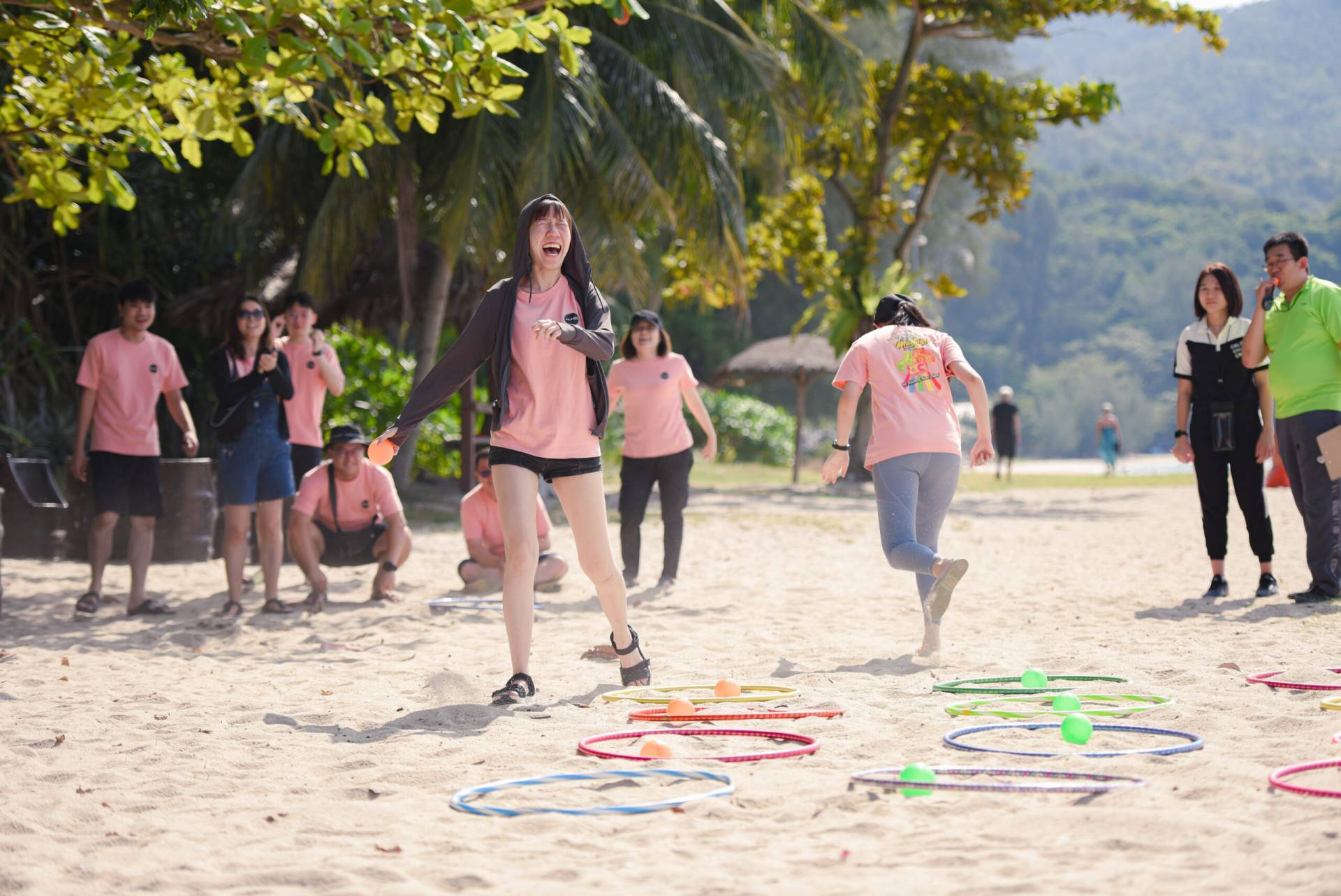 Teams compete in beach games, promoting teamwork, communication, and leadership, fostering corporate collaboration, morale, and camaraderie in a fun environment.